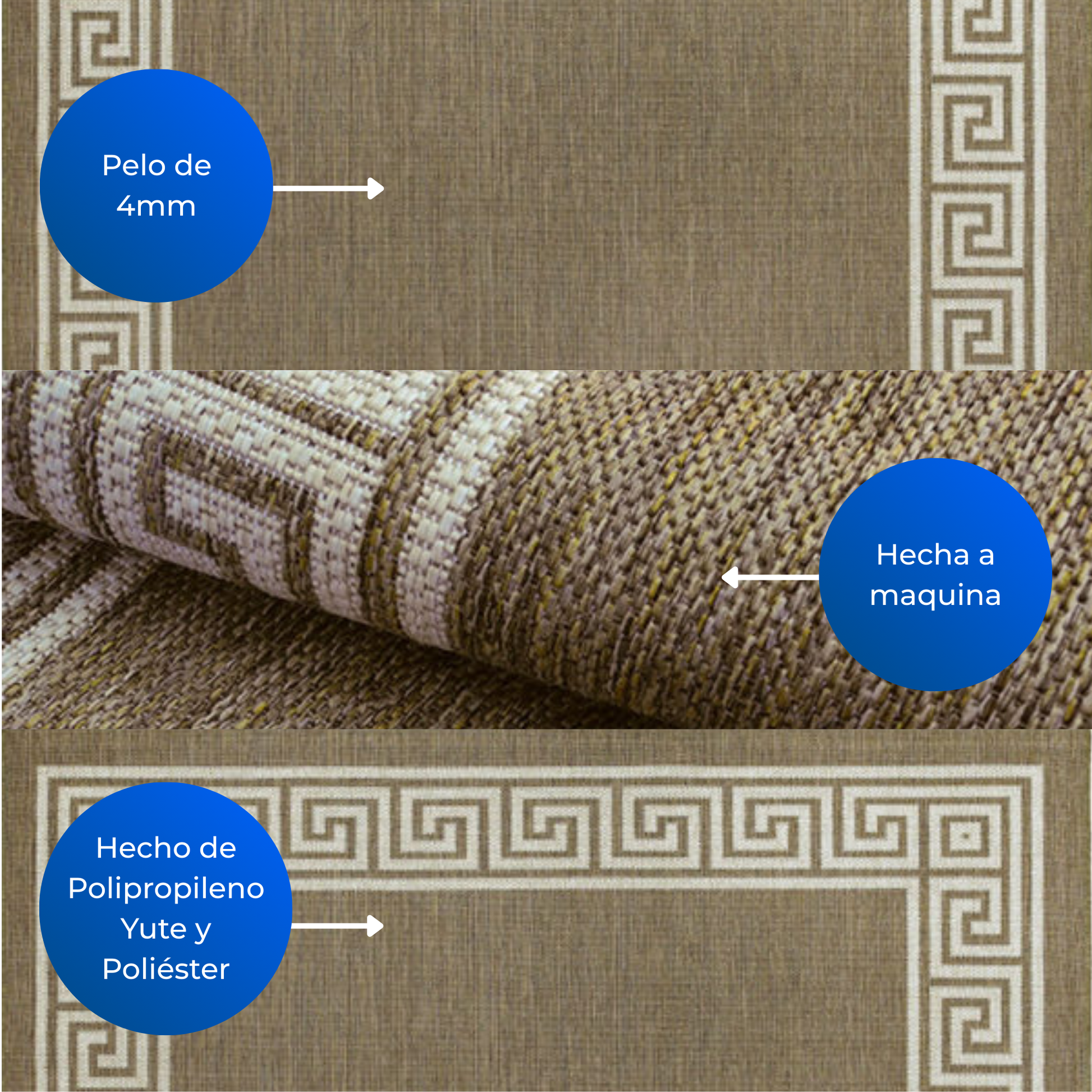 La alfombra Dover es el complemento ideal para aportar elegancia y sutileza al espacio en el que se ubique gracias a su diseño boucle de pelo corto de 4mm. Su base primaria esta compuesta de yute en 88% 12 % poliéster y con puntos en PVC antideslizante su base secundaria de 50% poliéster y 50% polipropileno y la fibra de polipropileno en un 100% hecha a máquina y con un sistema SDR lo que garantiza durabilidad de sus colores ya que se tiñe el hilo durante su fabricación y no solo es su superficie.