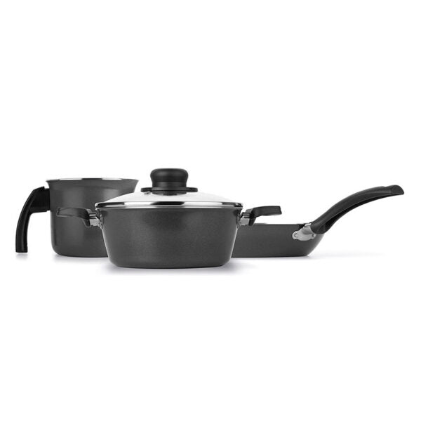 Eleva tu experiencia en la cocina con la Batería 3 Piezas Basic Gris, diseñada para ofrecer durabilidad, distribución uniforme del calor y facilidad de limpieza. Fabricada en aluminio de 99,7% de pureza, garantiza un calentamiento rápido y eficiente, reduciendo el consumo de energía.