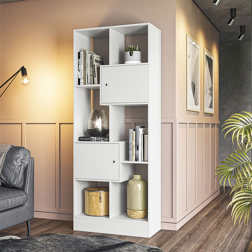 La Biblioteca Arica cuenta con dos puertas y ocho compartimientos ideales para optimizar y decorar cualquier espacio del hogar o la oficina.