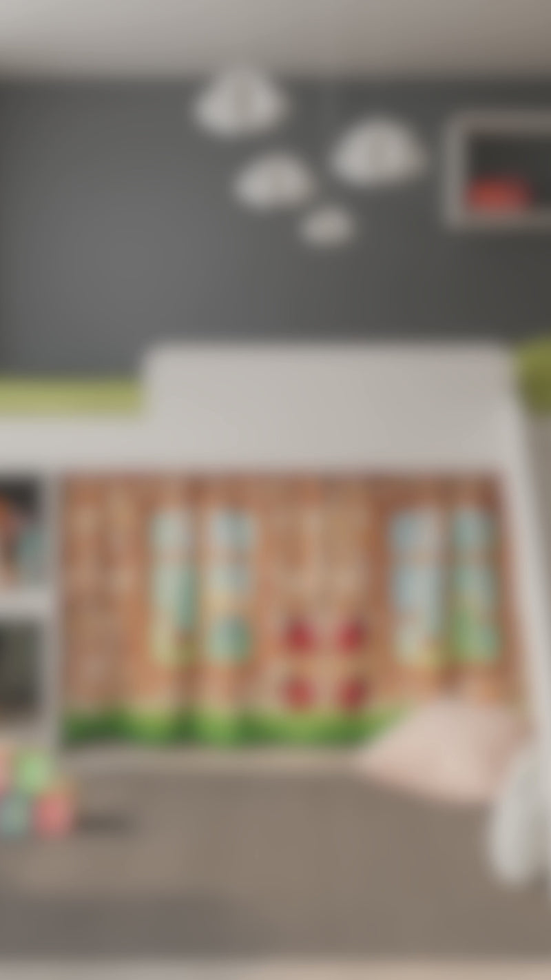 La Cama infantil Playground es un mueble de fácil armado que gracias a su diseño moderno proporciona un ambiente de comodidad y diversión. Cuenta con un estante que hace las veces de escalera, un rodadero que puede instalarse al lado derecho o izquierdo y un espacio que sirve como zona de juegos o para la ubicación de objetos, ambientado con una cortina con diseño infantil.
