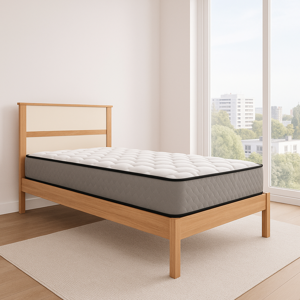 Descubre el equilibrio perfecto entre confort y soporte con este colchón diseñado para transformar tus noches en verdaderos momentos de descanso. Su tela de punto de 180 gramos, acolchada y suave al tacto, invita a la relajación desde el primer contacto. Las láminas de espuma en ambas caras brindan una sensación envolvente de confort, mientras que su unidad resortada Bonell en acero garantiza firmeza y un excelente soporte de peso. El aislante de fieltro en cada lado optimiza la durabilidad, permitiendo que el colchón pueda utilizarse por ambas caras sin perder comodidad. Con una altura de 25 cm y firmeza media, es la opción ideal para quienes buscan descanso reparador, adaptabilidad y calidad en un solo producto.