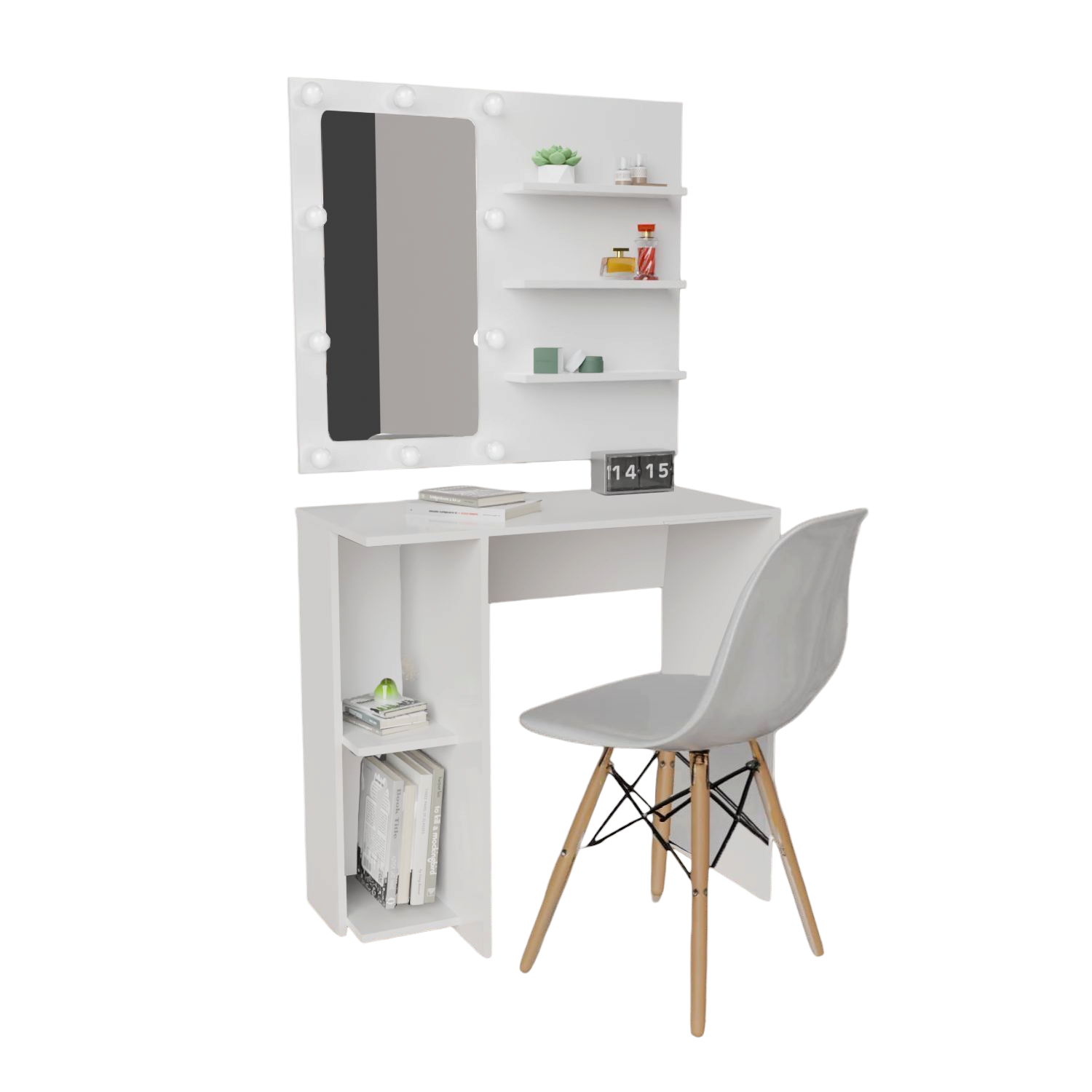 Combo Escritorio Panel Tocador Hollywood + Silla Eames (77x80x40) Blanco