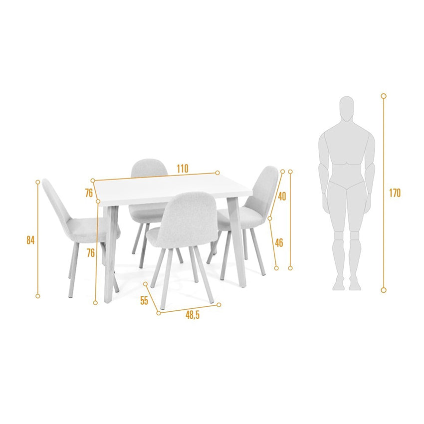 El Comedor Lugo Matiz 4 Puestos cuenta con una base en madera pino y tapa de madera aglomerada en MDP. Las sillas Matiz están fabricadas en estructura y patas metálicas pintadas acabado madera relleno en espuma y tapizadas en tela poliéster de muy buena calidad.