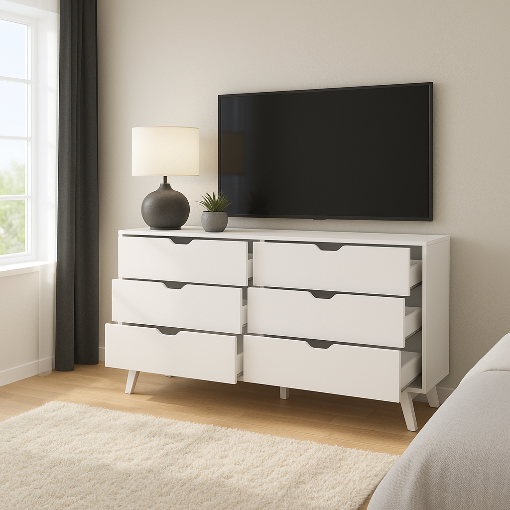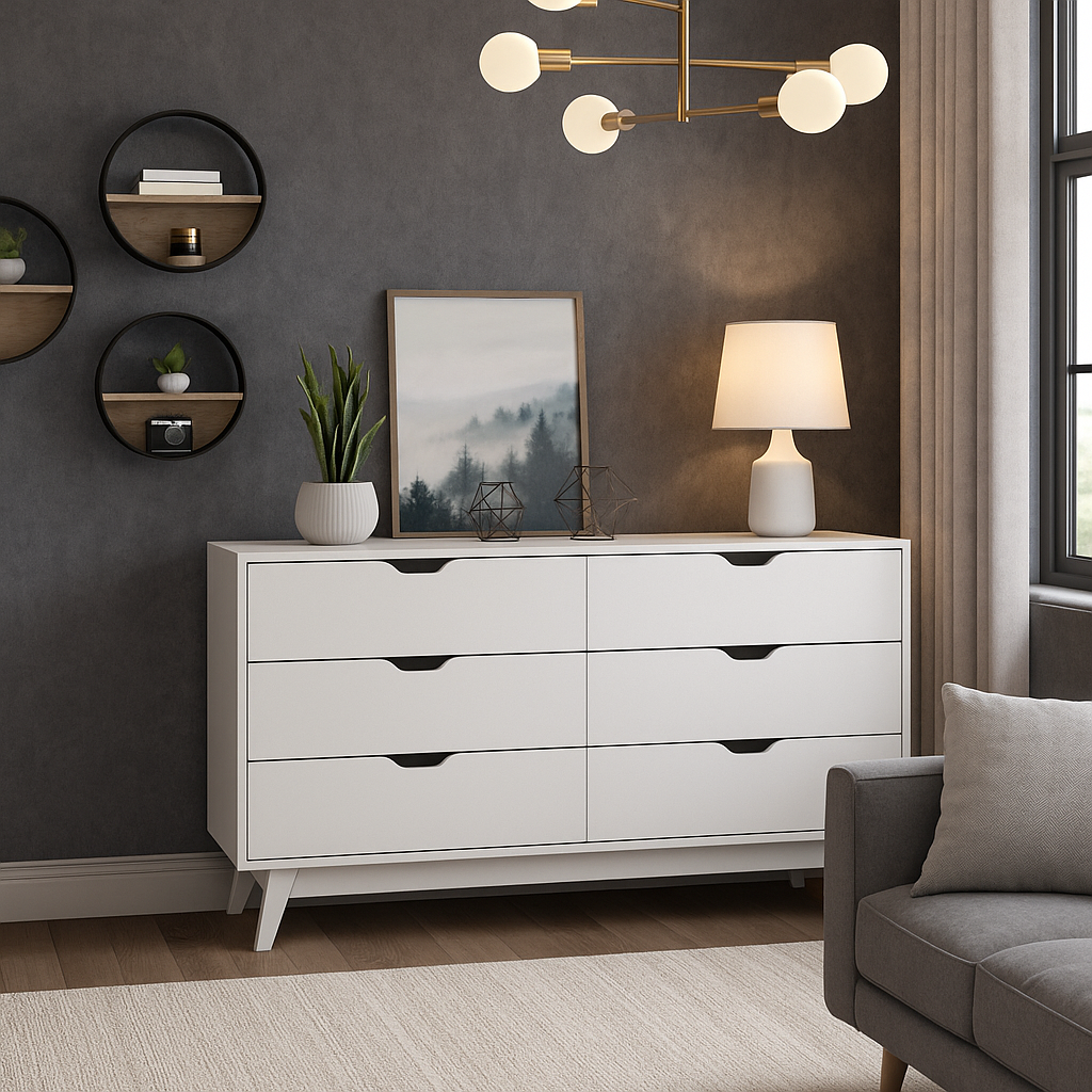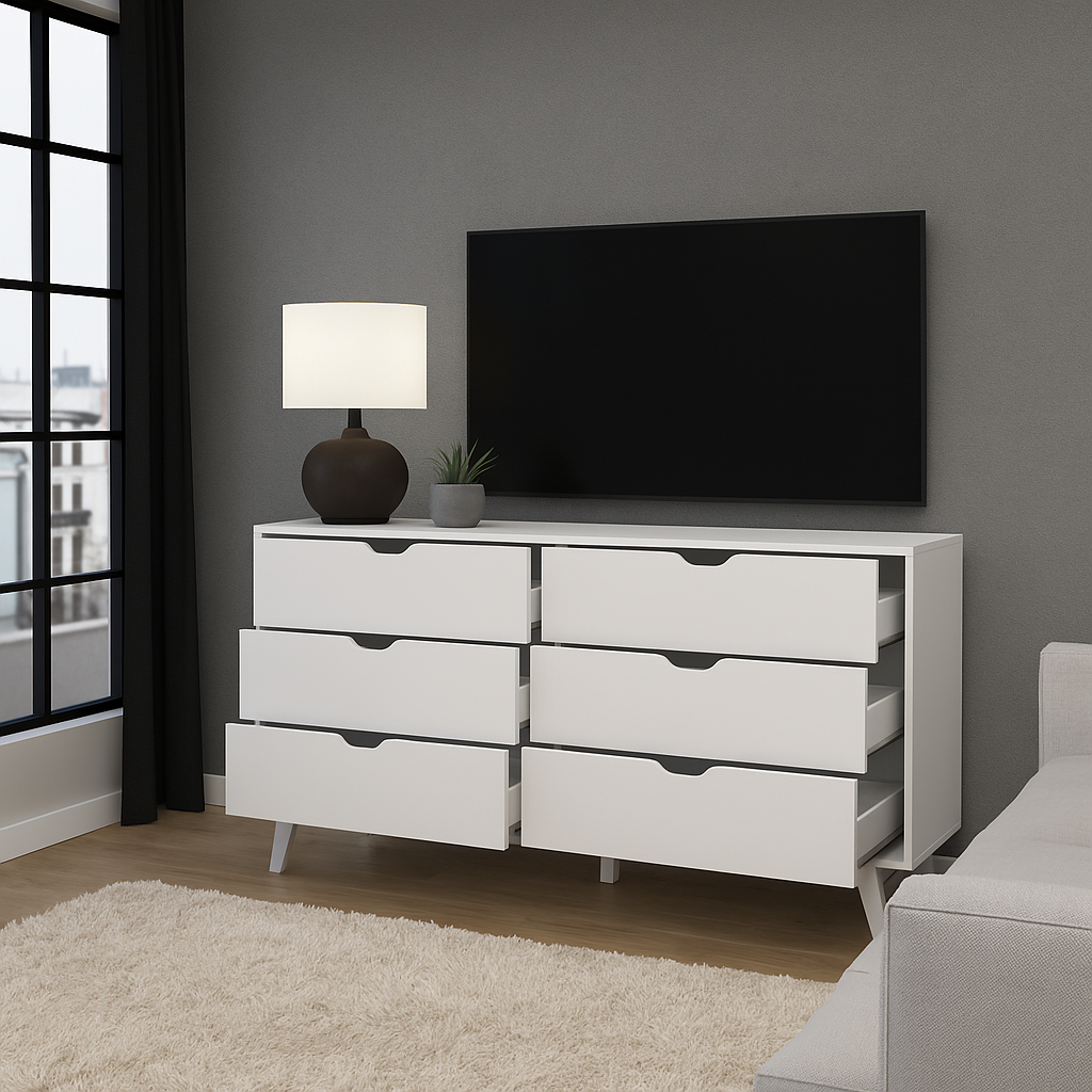 Con líneas limpias, superficie refinada y gran capacidad de almacenamiento, esta cómoda transforma la organización en un acto de estilo.