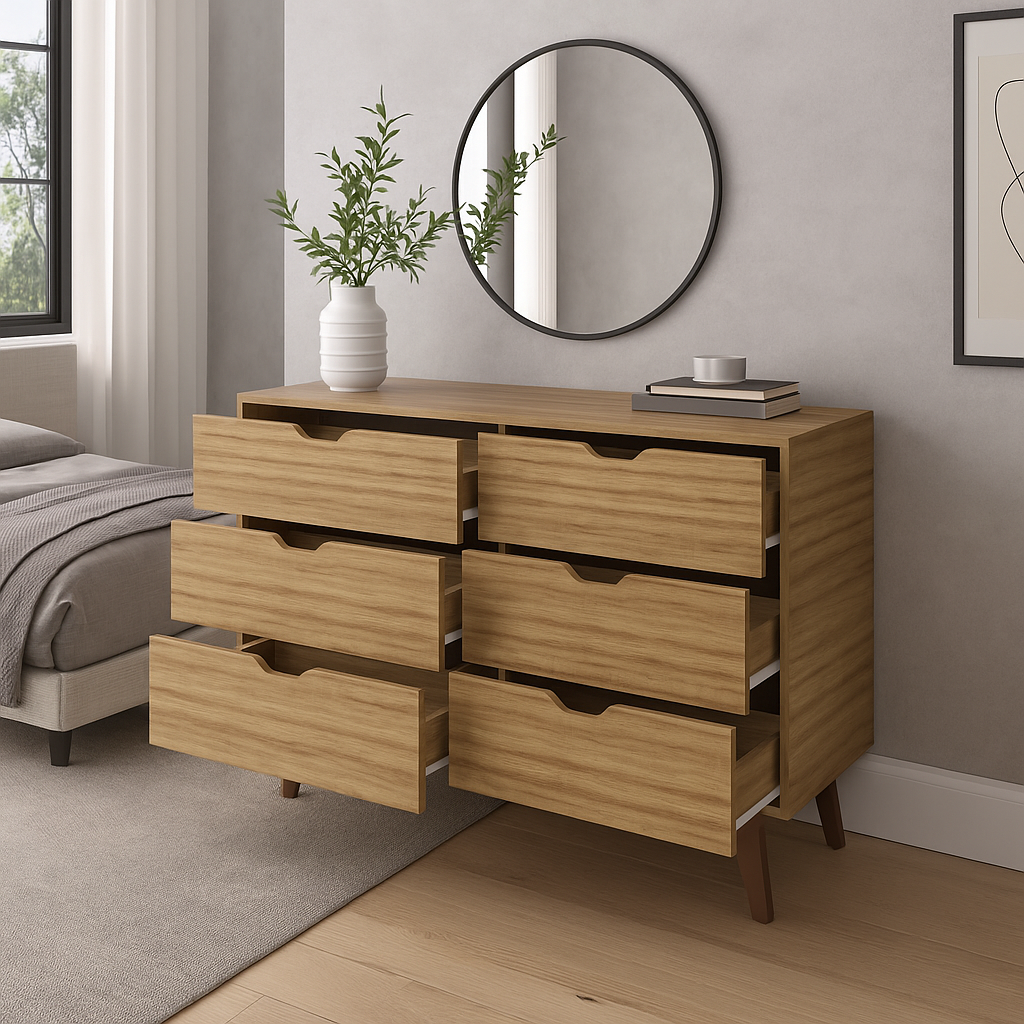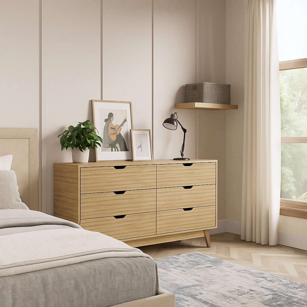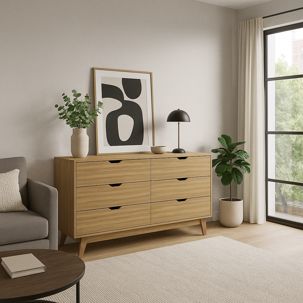 Con líneas limpias, superficie refinada y gran capacidad de almacenamiento, esta cómoda transforma la organización en un acto de estilo.
