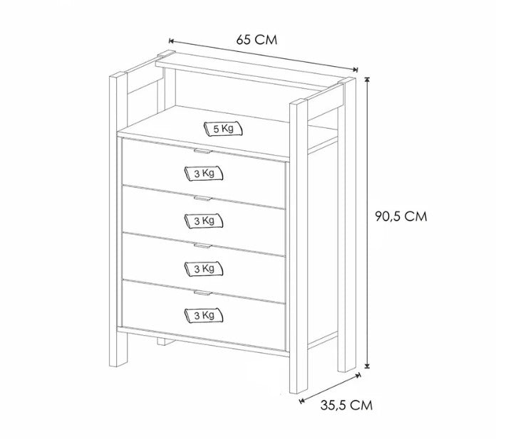 - Peso recomendado 3 Kg en cada cajón, 5 Kg en la tapa