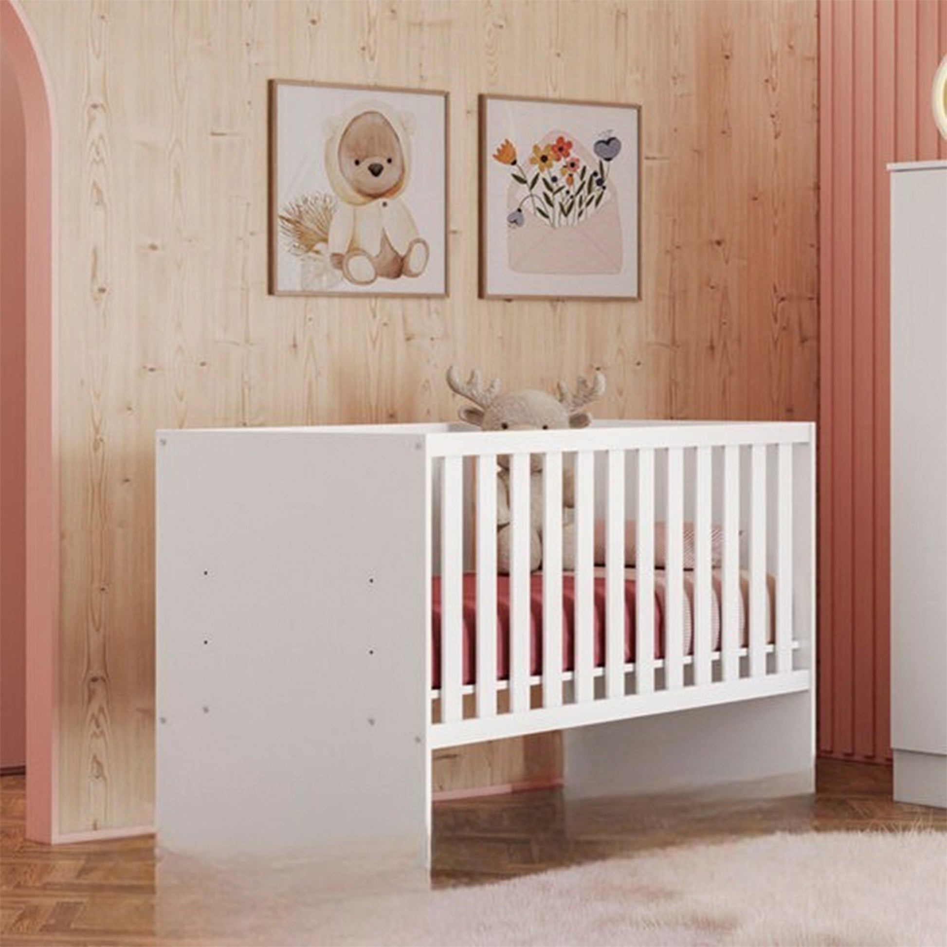 La cuna Cosmo es de diseño sencillo pero funcional pue es ajustable a tres alturas diferentes según las necesidades y etapas del bebé. Ha sido producida con aglomerado de madera MDP y su acabado en pintura UV garantiza mayor resistencia y durabilidad.