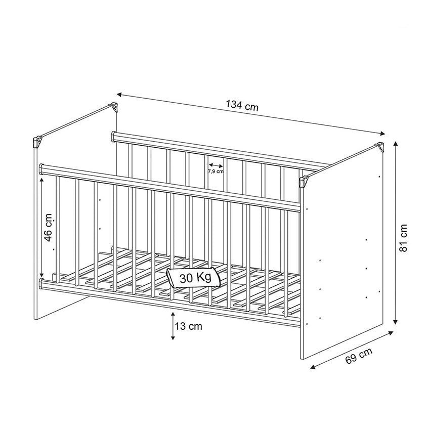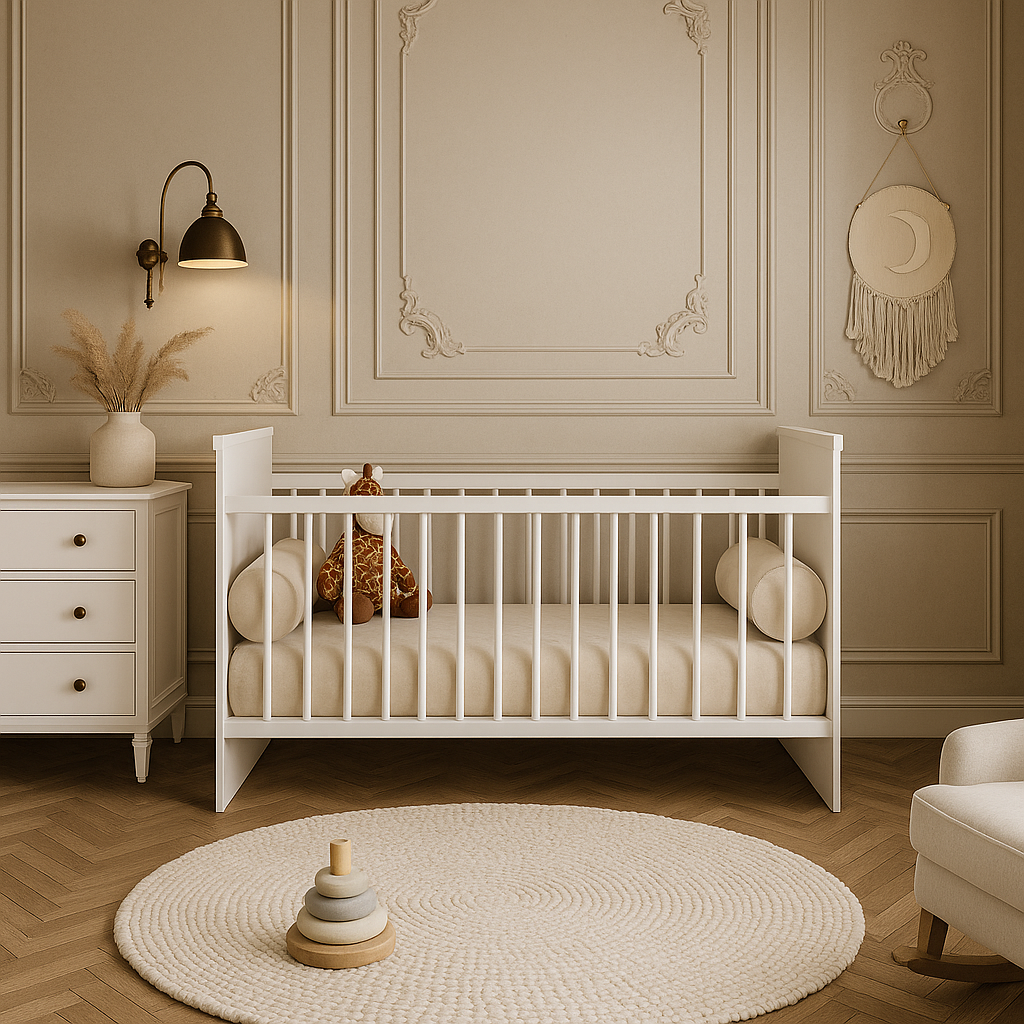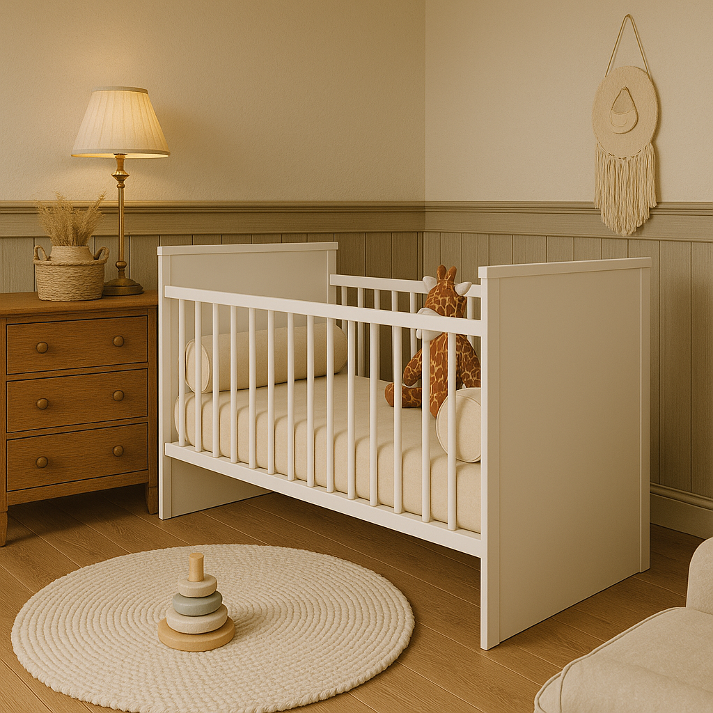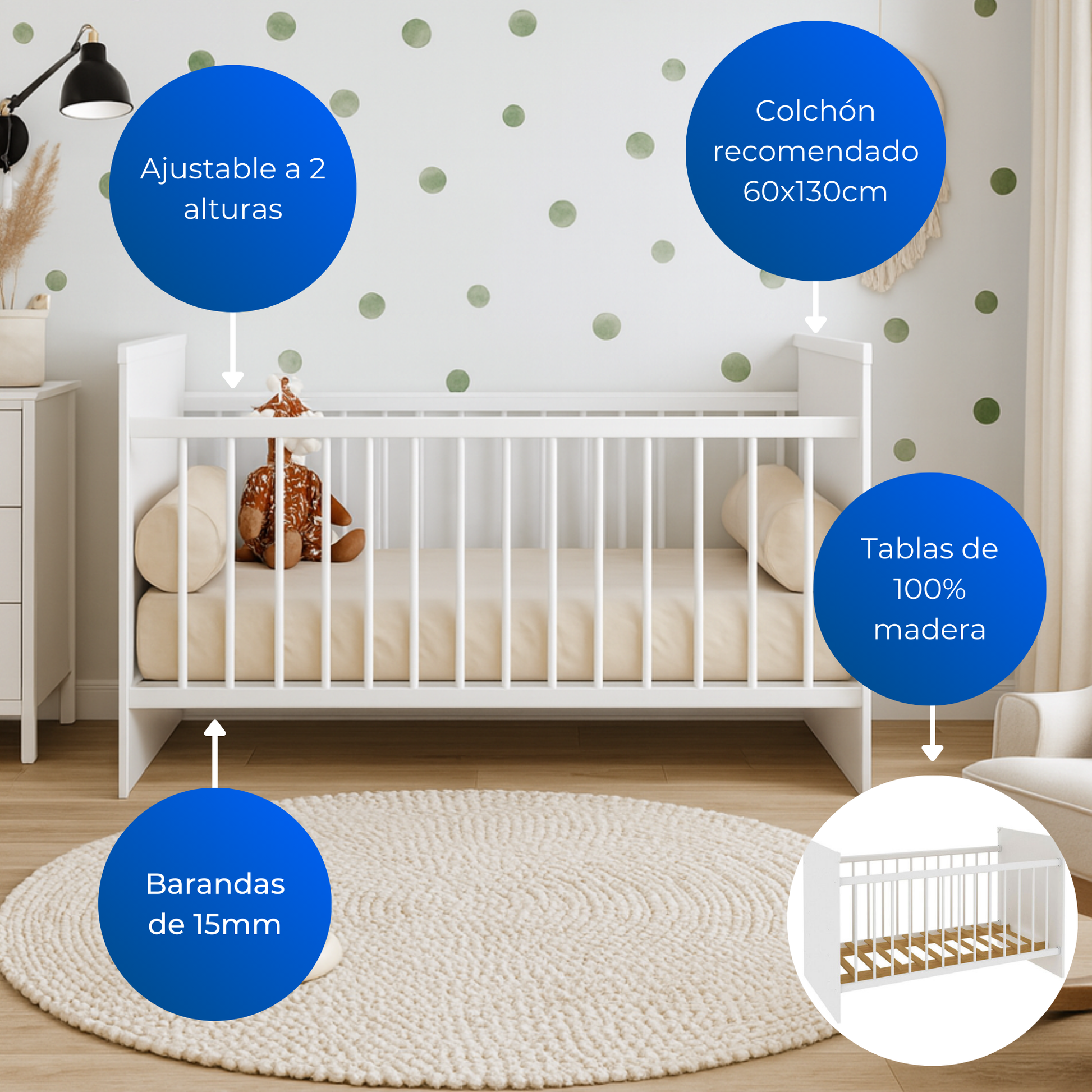 La Cuna Jaén Blanca es la combinación perfecta de seguridad, funcionalidad y diseño minimalista. Ideal para padres que buscan un mueble práctico y duradero, esta cuna cuenta con un sistema de altura ajustable en dos niveles, que se adapta a las distintas etapas del crecimiento del bebé.