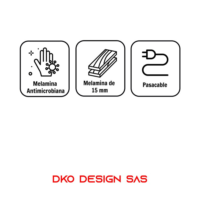 Escritorio-Biblioteca moderno Blanco en melamina en 15 mm con protección antimicrobiana al 99.9 % incluye pasacable en plastico.