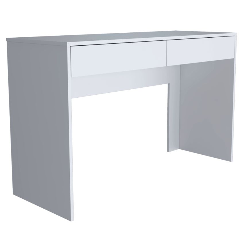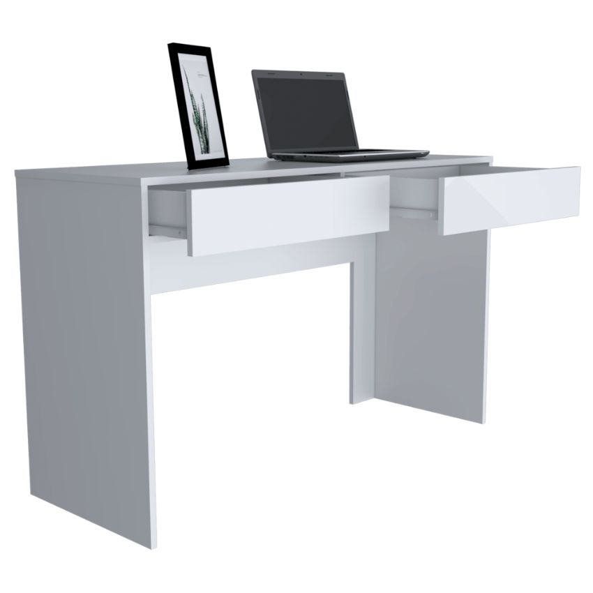 El Escritorio Mantis cuenta con 2 cajones. Elaborado en Madera aglomerada MDP recubierta con láminas melamínicas de excelente calidad en color Blanco.