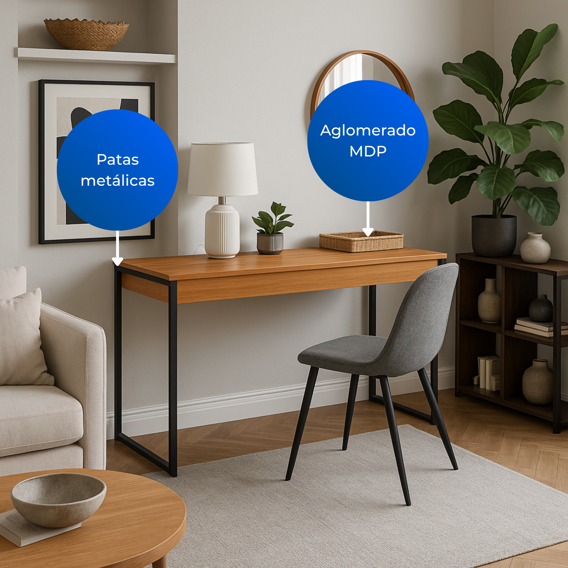 El Escritorio Oslo combina fuerza estructural y estilo industrial en una pieza que equilibra modernidad y carácter. Sus patas metálicas aportan firmeza y durabilidad, mientras que las líneas limpias y minimalistas de su diseño permiten integrarlo sin esfuerzo en cualquier ambiente, desde oficinas modernas hasta espacios creativos.