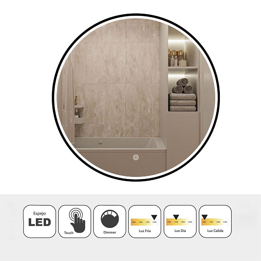 Espejo Decorativo redondo Azore con iluminacion LED estilo escandinavo con marco minimalista en color dorado. Gracias a su forma circular se adapta perfectamente a cualquier interior ya sea el estilo escandinavo industrial moderno o clásico. Este bonito espejo de tendencia agregará estilo y elegancia tu salón comedor dormitorio recibidor o cuarto de baño.