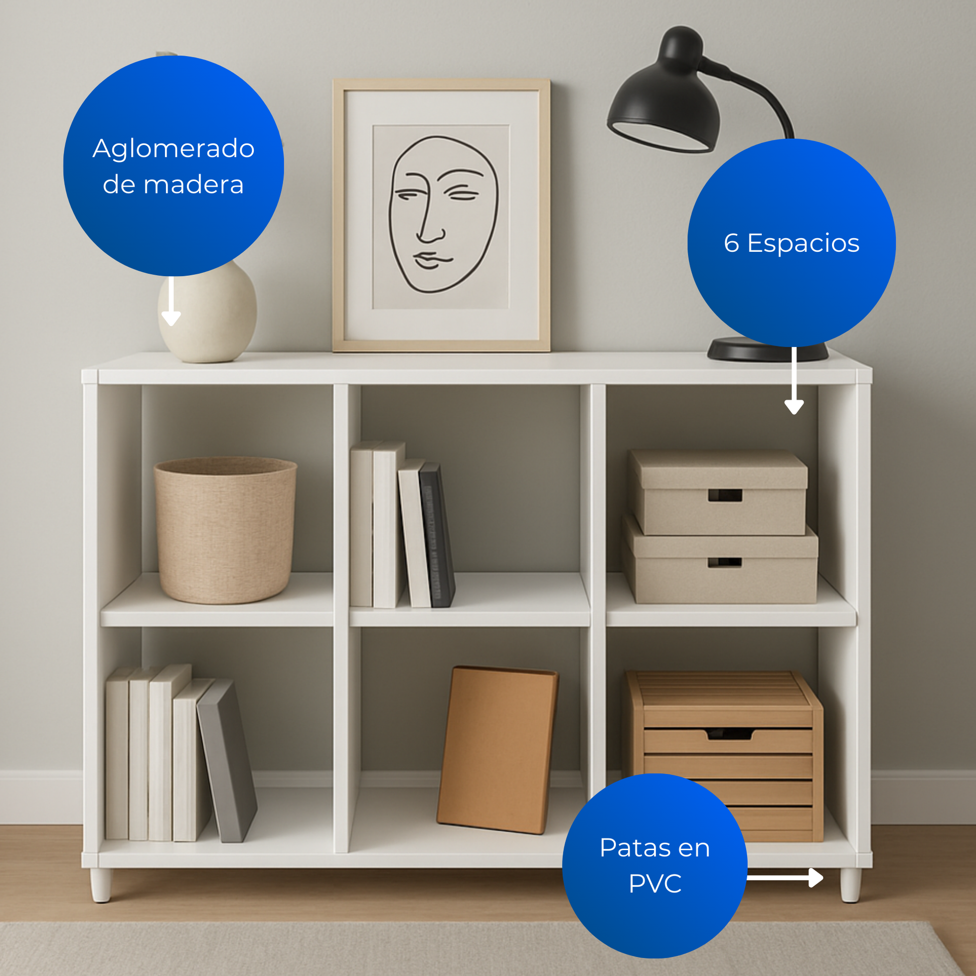 Fabricado en MDP de 15 mm y con acabado en melamina resistente, este mueble está diseñado para durar y soportar el uso diario. Su estructura permite almacenar libros, cajas organizadoras o elementos decorativos, aprovechando al máximo cada compartimiento.