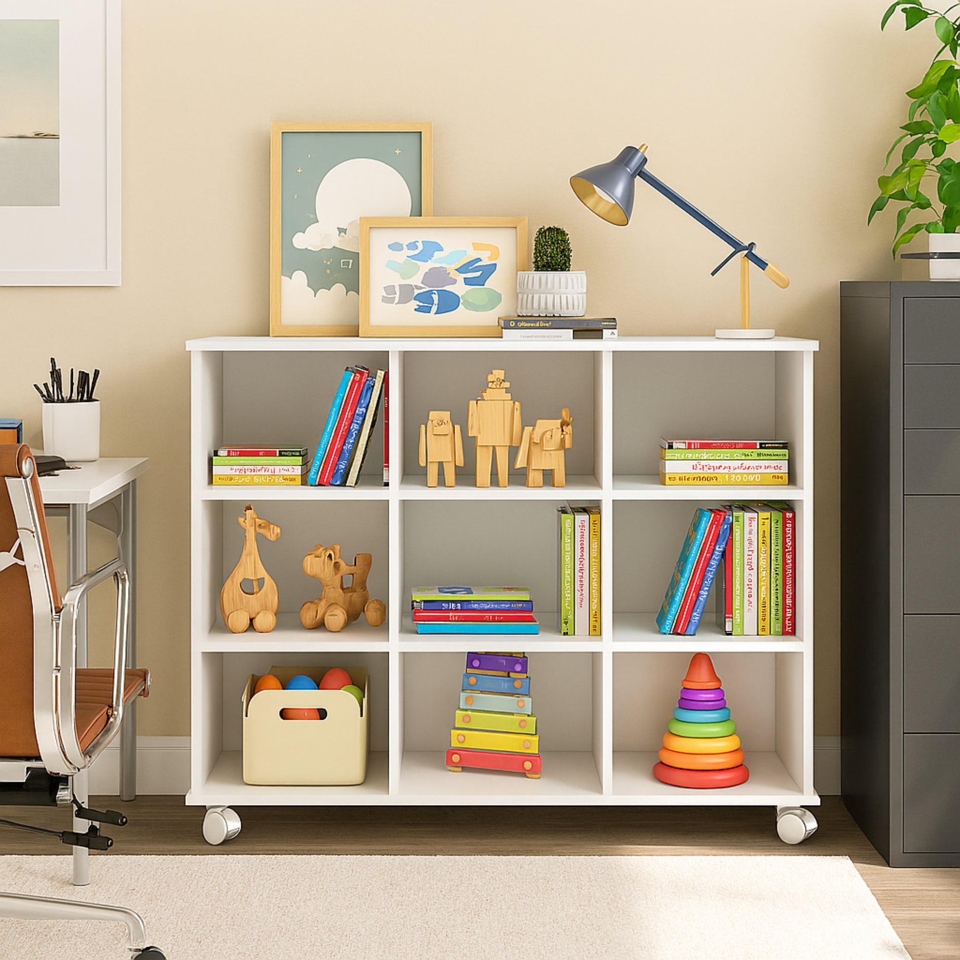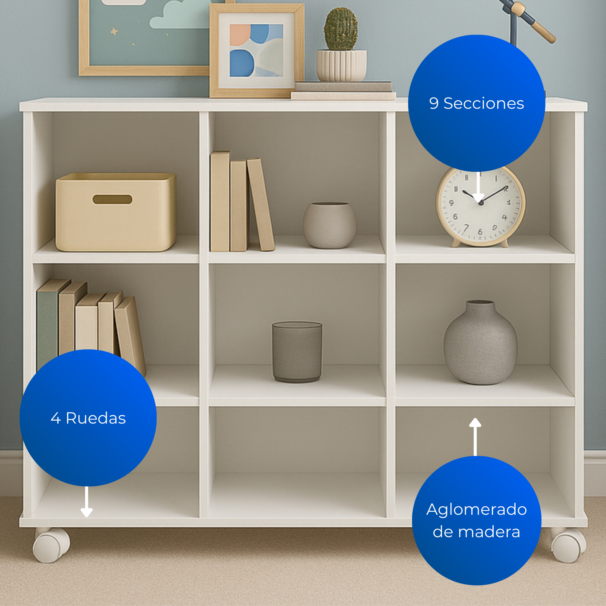 El Estante Salvador es una excelente solución de almacenamiento para el hogar u oficina. Gracias a su diseño práctico y compacto, puede ser ubicado fácilmente en estudios, salas, habitaciones o espacios de trabajo. Sus nueve compartimientos abiertos son perfectos para organizar libros, documentos, artículos decorativos o elementos de uso diario.