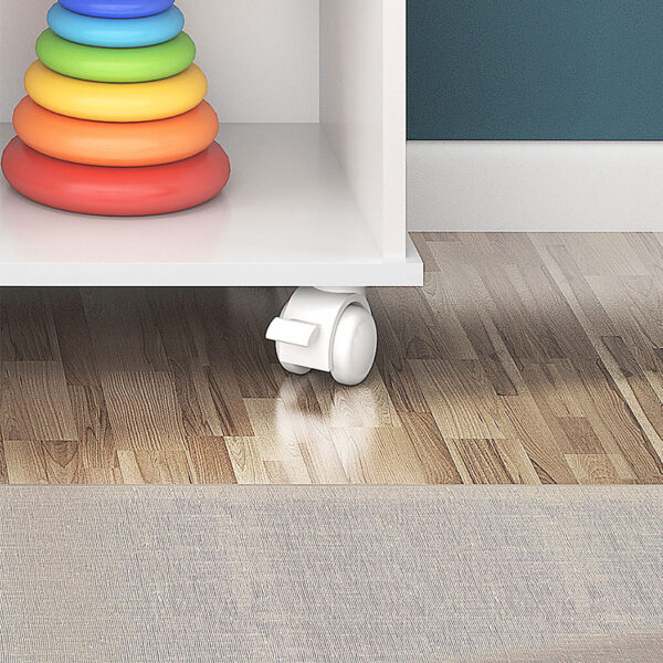 Incorpora cuatro ruedas resistentes que permiten moverlo con facilidad, lo cual lo convierte en una pieza funcional, adaptable y moderna.