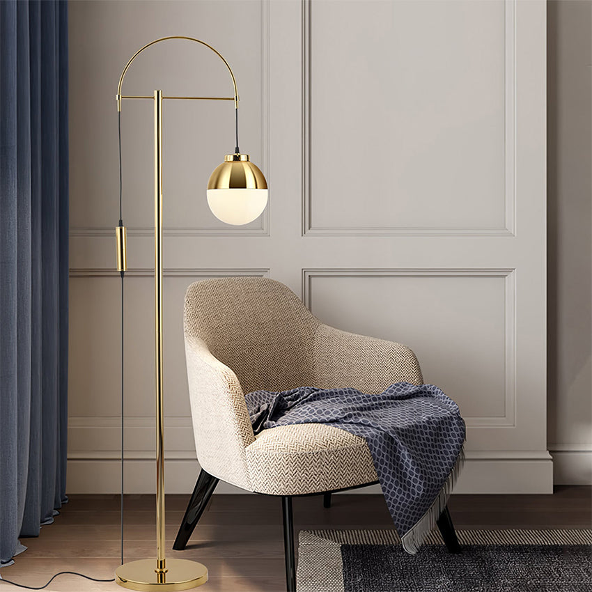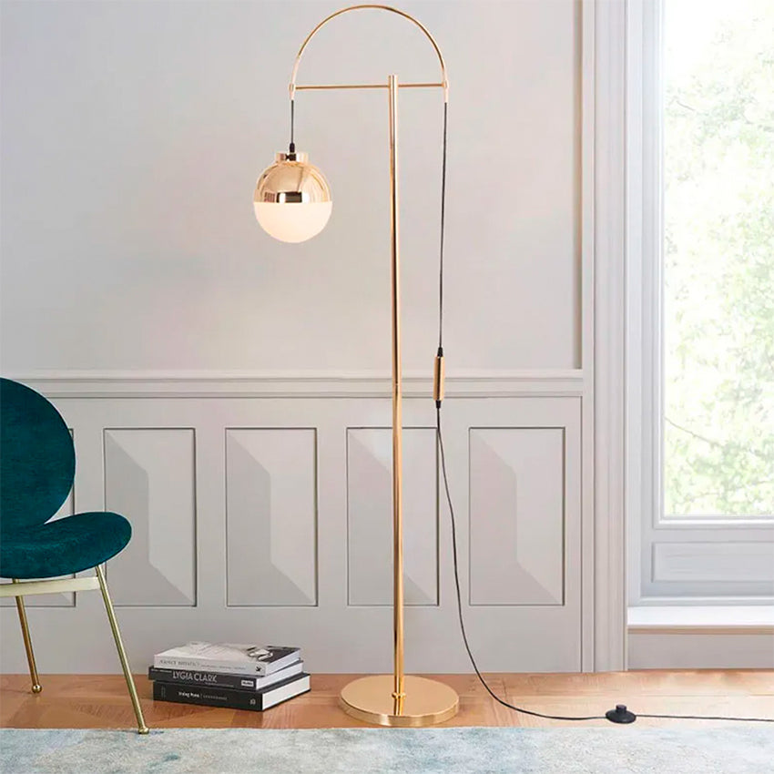 La lámpara de piso Bruna tiene un diseño contemporáneo que combina metal y vidrio de forma creativa lo que la convierte en una pieza única y elegante que seguramente llamará la atención en el espacio en que se ubique.