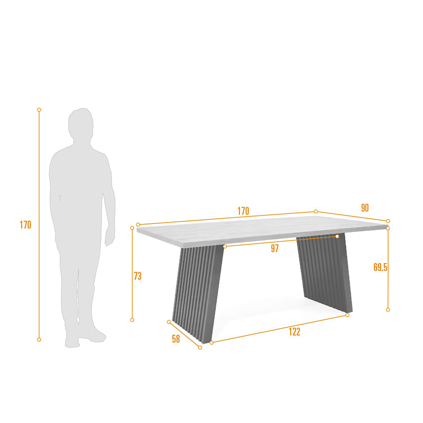 Se destaca por su moderno diseño. Está fabricada con una superficie en MDP de 15 mm enchapado la cual brinda durabilidad y resistencia. Además cuenta con un reengruese en MDF de 18 mm y refuerzos inferiores en madera pino lo que garantiza una estructura sólida y estable. Las patas de la mesa están ruteadas y lacadas las cuales son entamboradas en MDF de 12 mm y madera pino lo que proporciona un soporte firme y seguro.Dimensiones: 170 cm ancho x 90 cm largo x 73 cm alto.Peso: 47 kg - Soporta: 110 kg.Incluye: 1 Mesa de Comedor.No incluye elementos decorativos.Ensamble: Requiere ajustar la pata con tornillos bristol.El color del mobiliario en la fotografía es una aproximación al color real puede variar por la luz ambiente y la diferencia en la resolución de la pantalla del computador o dispositivo móvil.