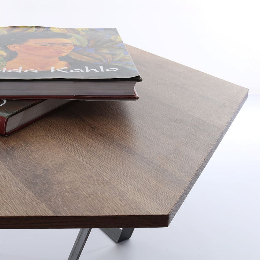 Mesa De Centro Hexagonal Moderna fabricada en melamina de 15 mm color amaretto con protección antimicrobiana al 99.9 % y patas metalicas con pintura electroestaticaEl tiempo de entrega de este producto es de 3 a 8 días hábiles.Importante: Este producto NO incluye elementos decorativos ni ambientación y El color presentado en la fotografía es una aproximación al color real.