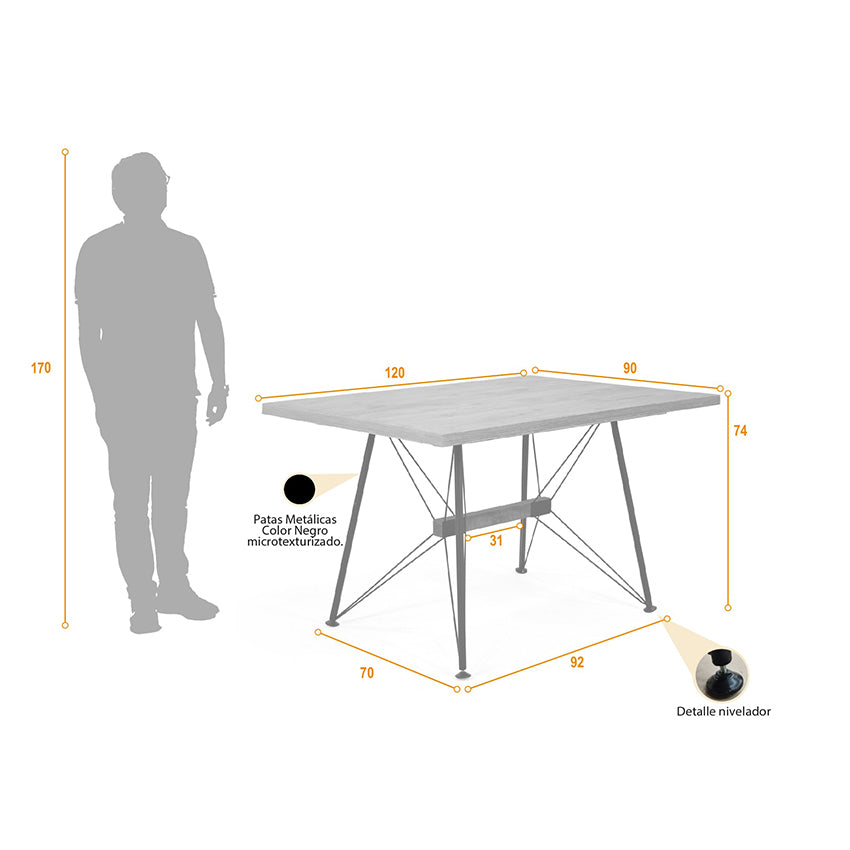 Su diseño aporta una excelente practicidad en espacios que quieran lucir confortables tiene estructura en pino en forma de U con acabado en laca tiene una tapa en madecor de 15 mm con reengruese de mdf de 18 mm acabado en canto flexible.Dimensiones: 144 cm ancho x 80 cm largo x 76 cm alto.Peso: 29 kg - Soporta: 140 kg.Incluye: 1 Mesa De Comedor.No incluye elementos decorativos.Ensamble: Requiere ajustar las patas con tornillos bristol.El color del mobiliario en la fotografía es una aproximación al color real puede variar por la luz ambiente y la diferencia en la resolución de la pantalla del computador o dispositivo móvil.
