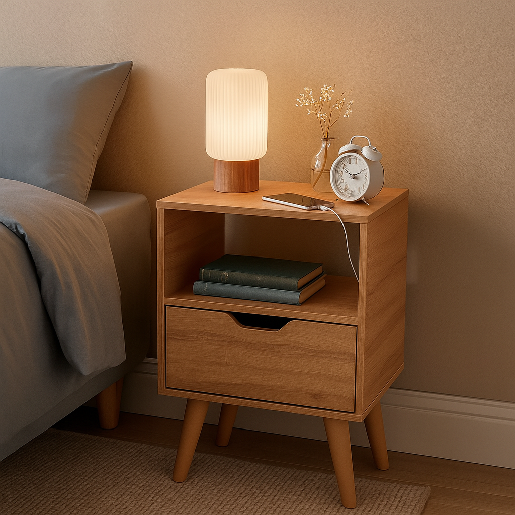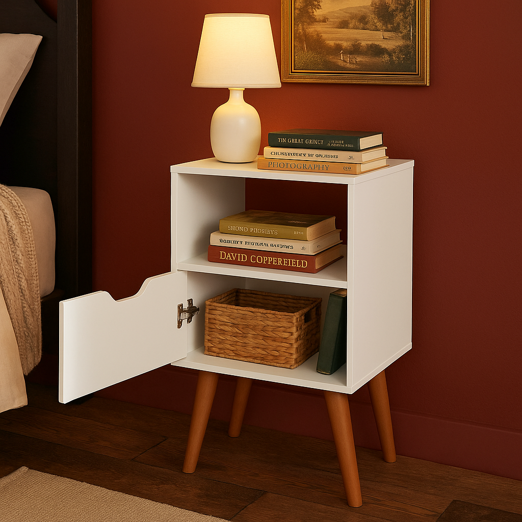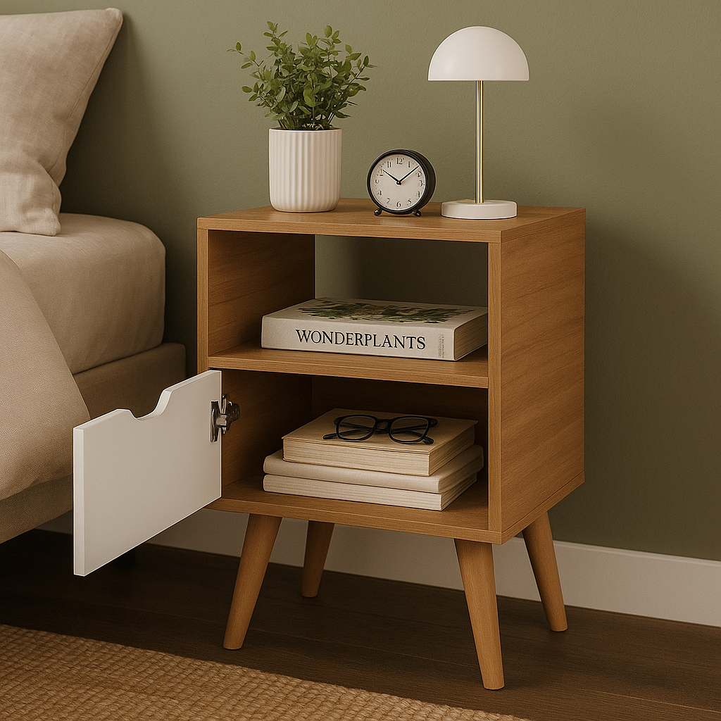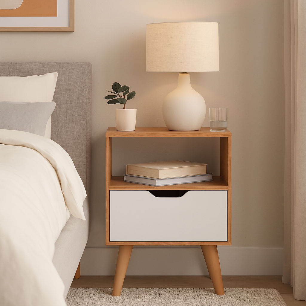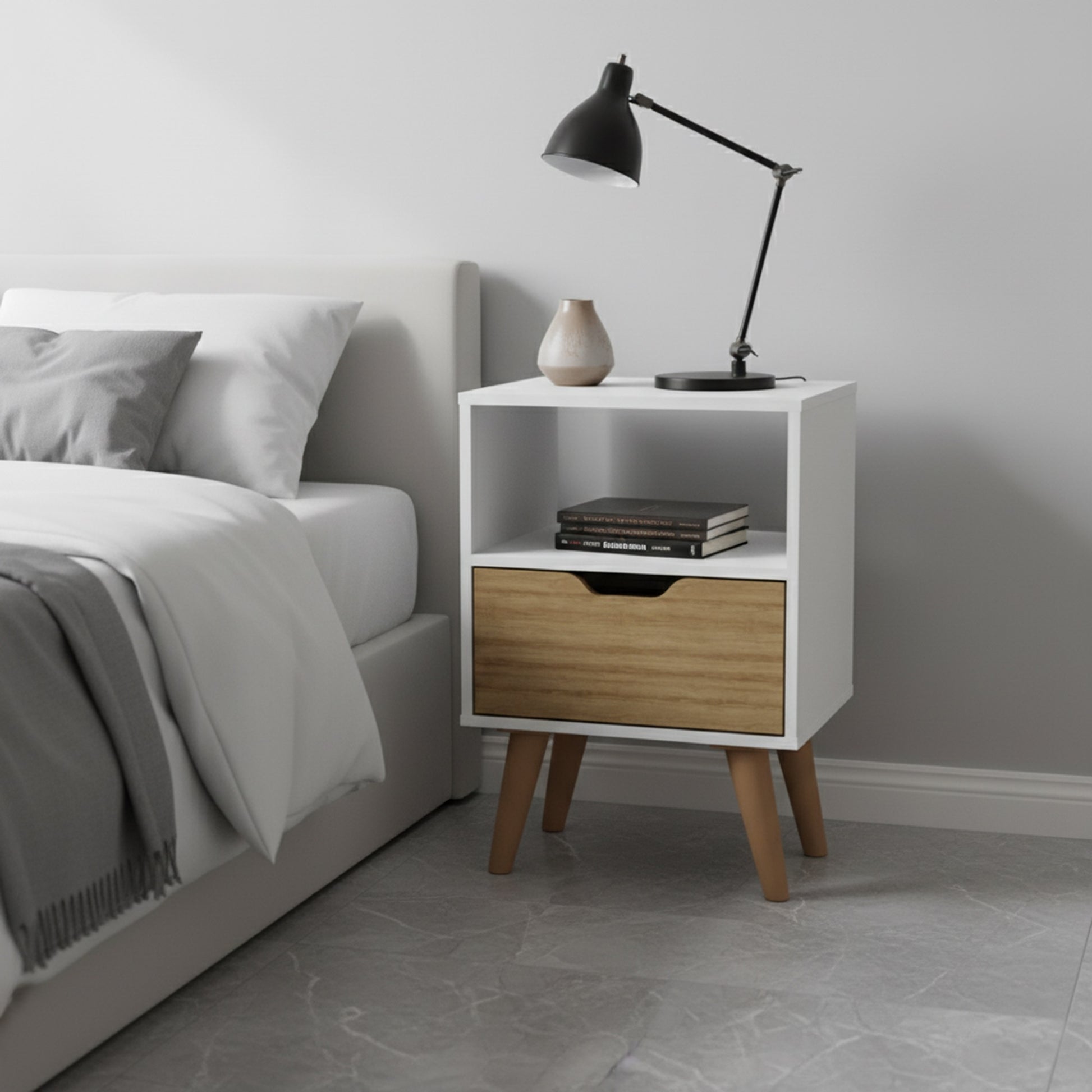 La Mesa de noche Essen es de diseño minimalista, limpio, y sencillo gracias a los cajones y entrepaños que mantendrán la habitación ordenada.