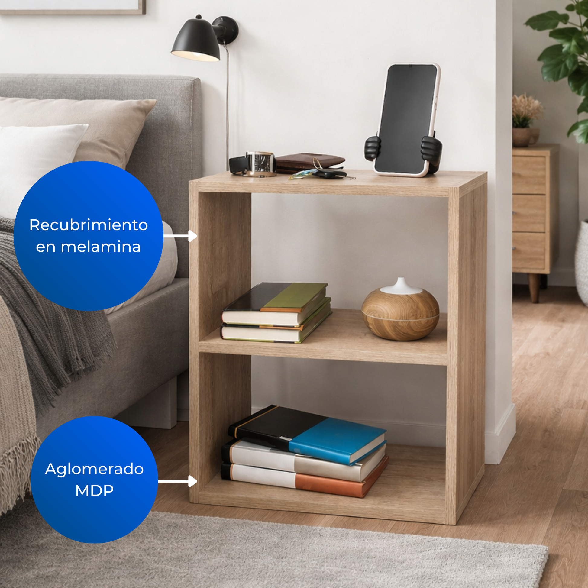 La Mesa de Noche Valladolid apuesta por el minimalismo inteligente para maximizar cada centímetro. Su diseño moderno la convierte en la opción ideal para espacios reducidos, aportando ligereza visual y estilo contemporáneo. Fabricada en MDP con recubrimiento en melamina de 15 mm, garantiza resistencia y durabilidad en el uso diario. Un mueble estratégico que demuestra que menos, cuando está bien pensado, siempre es más.]