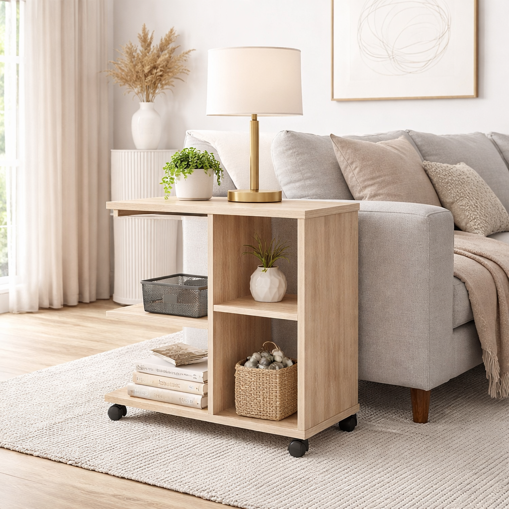 La Mesa Multiusos Zamora es versatilidad en movimiento. Su diseño funcional, equipado con cuatro ruedas, permite adaptarla con agilidad a cualquier espacio del hogar u oficina, mientras sus entrepaños optimizan el orden con eficiencia operativa. Fabricada en MDP con recubrimiento en melamina de 15 mm, ofrece resistencia y durabilidad para el ritmo del día a día. Una solución estratégica que se desplaza contigo y convierte la organización en una ventaja competitiva.