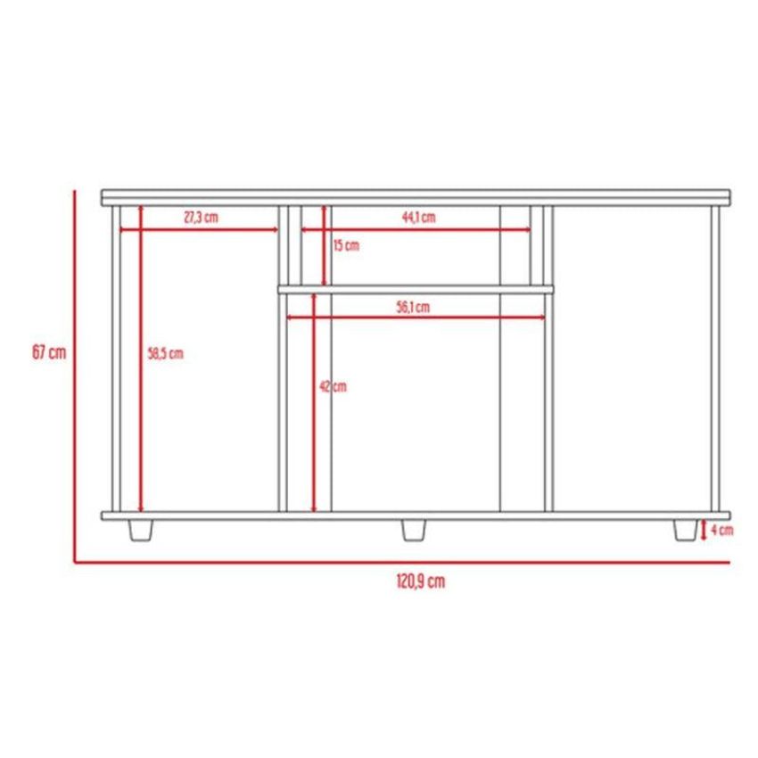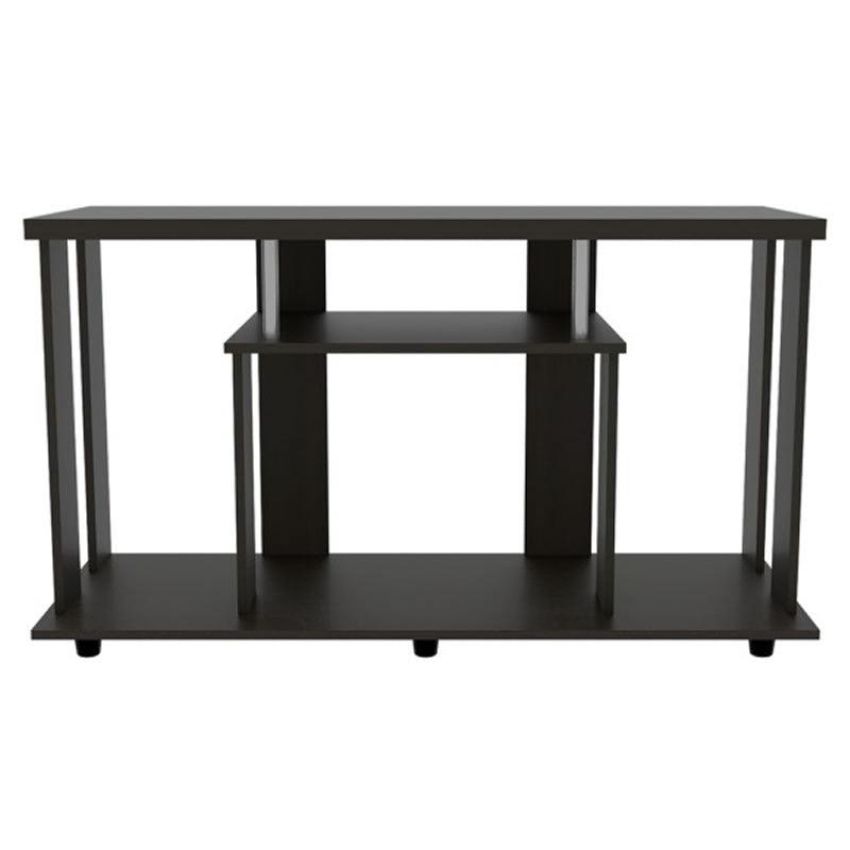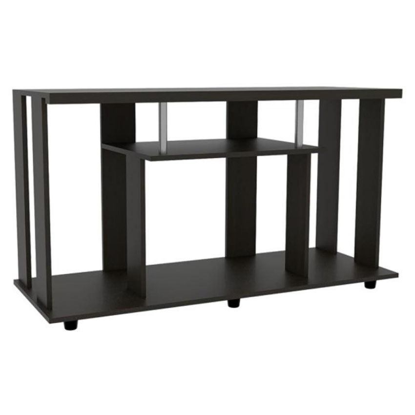 La Mesa Para Tv Alpin cuenta con un espacio superior para ubicar un tv de hasta 50 pulgadas con espacio para ubicar equipo de audio video y patas plásticas para fácil desplazamiento. Elaborado en Madera aglomerada MDP recubierta con láminas melamínicas de excelente calidad en color Wengue