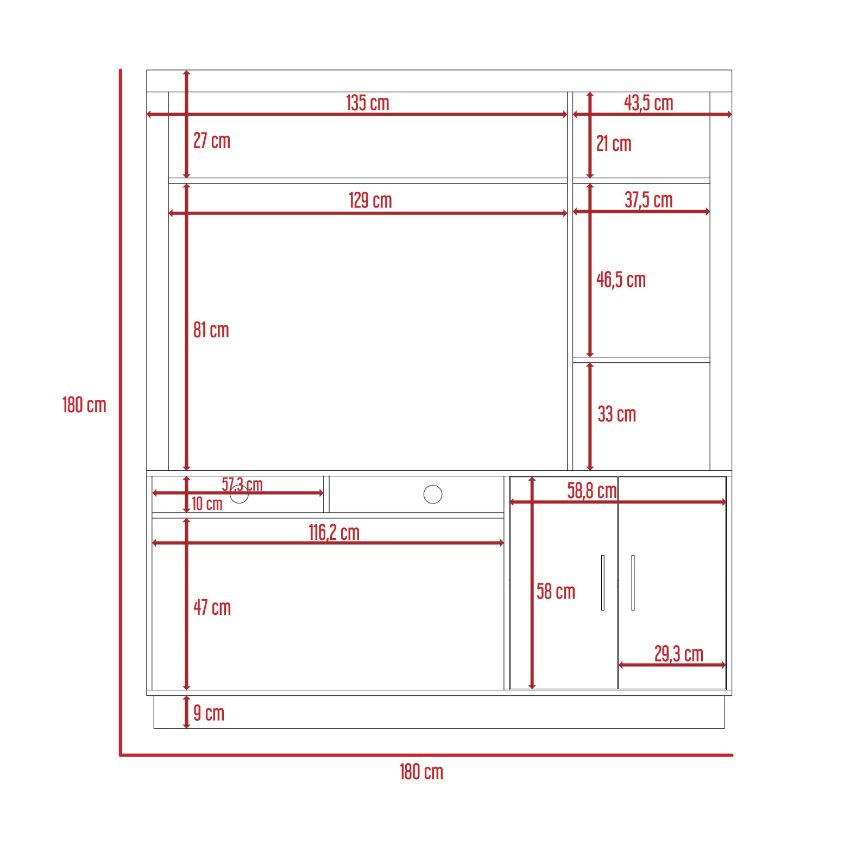 La Mesa Para Tv Romeo con 2 puertas abatibles espacio central para TV hasta de 55 pulgadas y espacio inferior para colocar equipos de audio y video o centro de entretenimiento. Elaborado en Madera aglomerada MDP recubierta con láminas melamínicas de excelente calidad en color Beige.