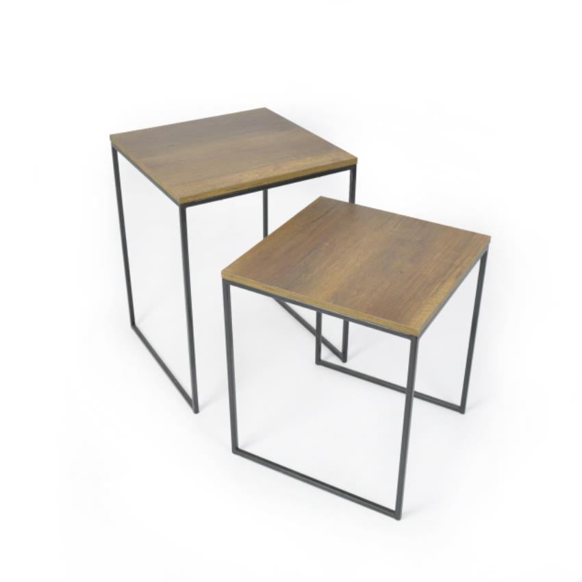 El Juego de Mesas Auxiliares Zurbano tienen base metálica cuadrada y tapa en MDP de 15mm Mácula.