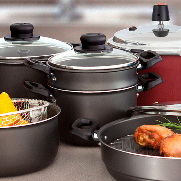 La olla vaporera Funcional está compuesta con aluminio de 99 7 de pureza revestimiento interno con 7 capas antiadherentes y baquelita antitérmica de 20 cm de diámetro. Cuenta con capacidad de 4 litros para cocinar alimentos al vapor.