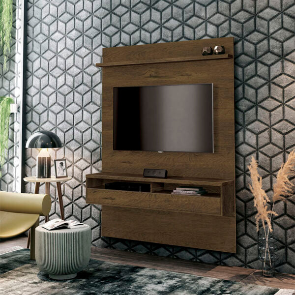 El Panel TV Milano se caracteriza por su elegante diseño por su repisa dos compartimientos y dos puertas que facilitan la organización de objetos en el lugar en el que se ubique. Soporta un televisor de hasta 50 que debe ser instalado al panel con un soporte fijo.