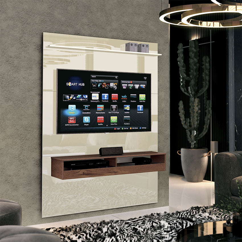 El Panel TV Torino 1.6 se caracteriza por su elegante diseño su repisa y dos compartimientos que facilitan la organización de objetos en el lugar en el que se ubique. Soporta un televisor de hasta 50 que debe ser instalado al panel con un soporte fijo.