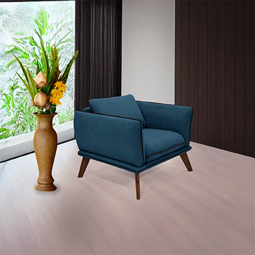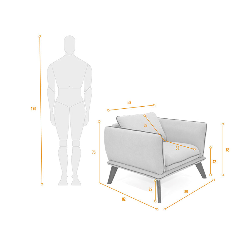 Diseño contemporáneo y minimalista que denota comodidad con apoya brazos y cojin removible. Elaborada en una fuerte estructura de madera pino inmunizada naturalmente relleno en espuma de alta densidad y tapizado en tela poliéster cuenta con patas en madera pino.Dimensiones: 89 cm ancho x 82 cm largo x 75 cm alto.Peso: 22 kg - Soporta: 130 kg.Incluye: 1 Poltrona.No incluye elementos decorativos.Ensamble: Enroscar las patas y ajustar en la parte inferior.El color del mobiliario en la fotografía es una aproximación al color real puede variar por la luz ambiente y la diferencia en la resolución de la pantalla del computador o dispositivo móvil.