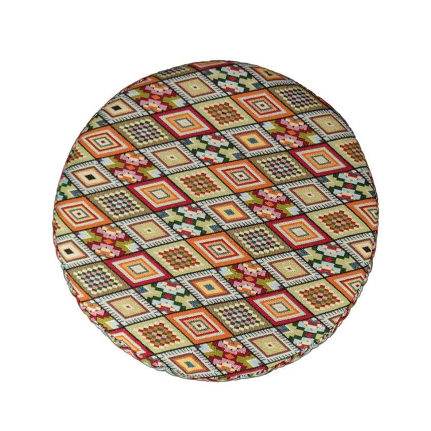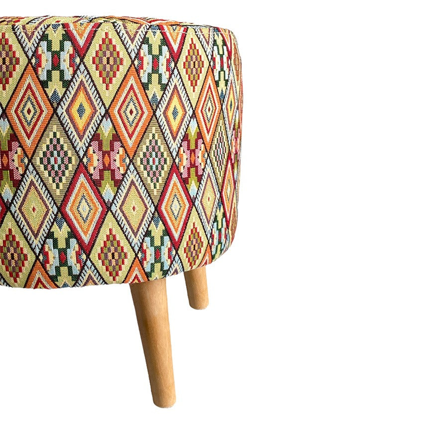 Puff redondo tapizado en tela gobelino artemiza estructura en madera natural espuma de alta densidad con 4 patas en madera color natural.El tiempo de entrega de este producto es de 3 a 8 días hábiles.Importante: Este producto NO incluye elementos decorativos ni ambientación y El color presentado en la fotografía es una aproximación al color real.