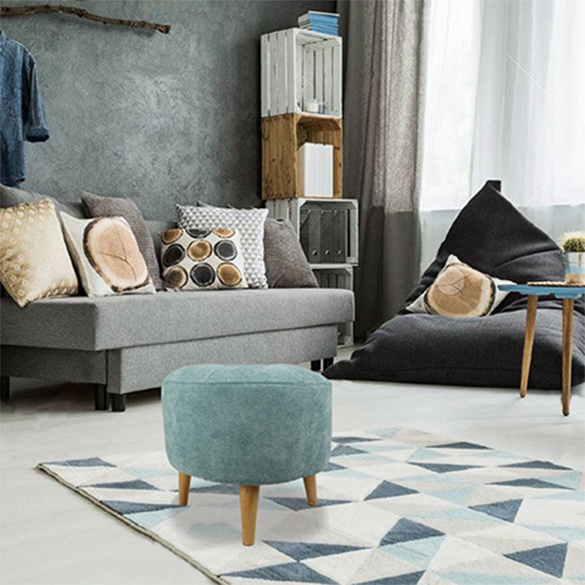 Puff Redondo capitoneado en color verde menta estructura en madera natural espuma de alta densidad con 4 patas en madera torneada color natural.