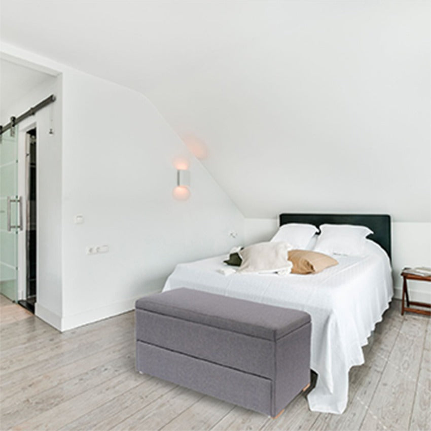 Puff Zapatero Tipo Banqueta Baúl con dos compartimientos tela color gris estructura en madera natural espuma de alta densidad decora tu hogar con un estilo en tendencia hecho en Colombia apoyemos lo nuestro.