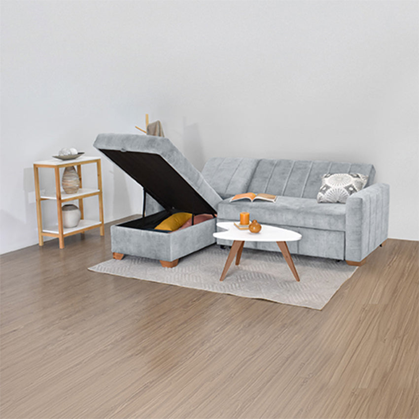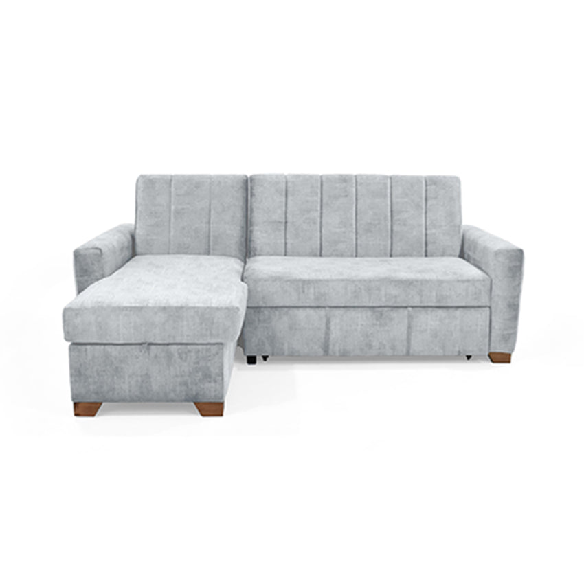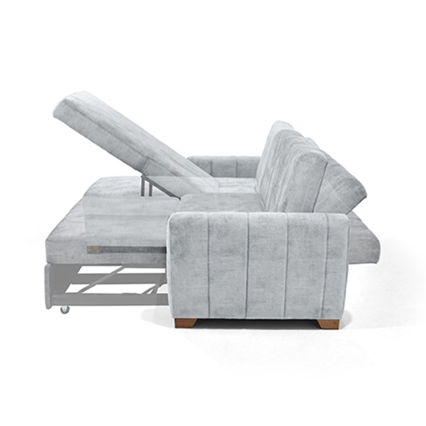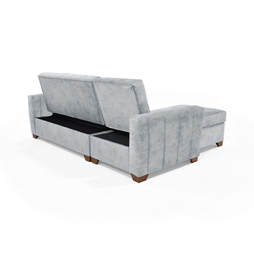 Su diseño amplio y espacioso lo hace ser adecuado para grandes espacios proporciodo un toque de elegancia y practicidad. La sala Apolo conformada por el sofá cama y el chaise tiene estructura y patas en madera pino inmunizada naturalmente relleno de espuma de alta densidad tapizado en tela de poliéster de excelente calidad. Tiene sistema de reclinación clic clack que permite ajustar el respaldo en tres posiciones diferentes además cuenta con herraje de cajón que permite desplegar otro módulo para completar la cama. En modo cama es de 180 cm x 185 cm. El chaise incluye un compartimiento interno que funciona como baúl con unas dimensiones de 104 cm x 57 cm x 21 cm.Dimensiones: 220 cm ancho x 160 cm largo x 92 cm altoPeso: 92 kg - Peso que soporta: 300 kgIncluye: 1 Sala en L Multifuncional.No incluye elementos decorativos.No requiere ensamble por parte del clienteEl color del mobiliario en la fotografía es una aproximación al color real puede variar por la luz ambiente y la diferencia en la resolución de la pantalla del computador o dispositivo móvil.