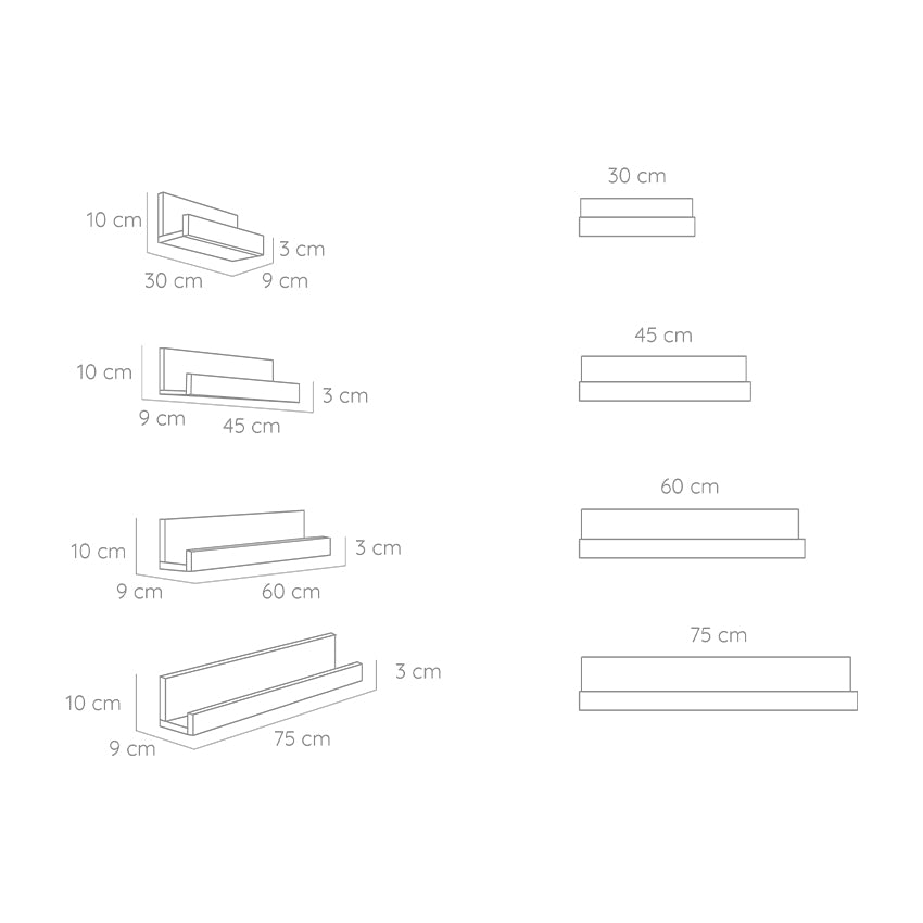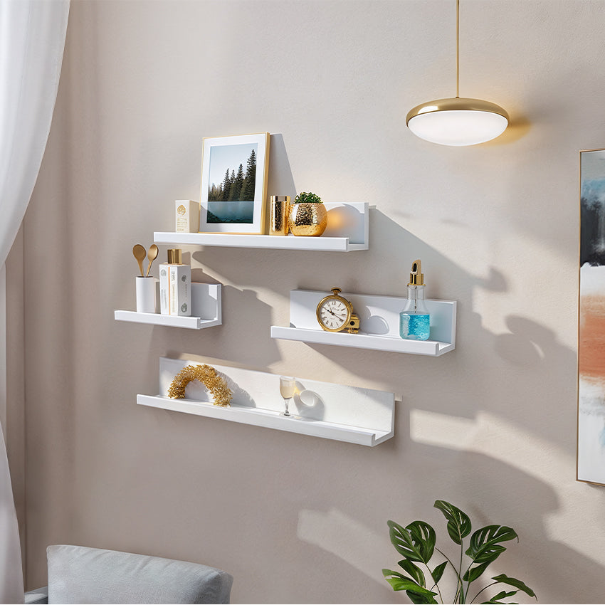 Set de Repisas decorativas en forma de J elaboradas en madera MDP color blanco.