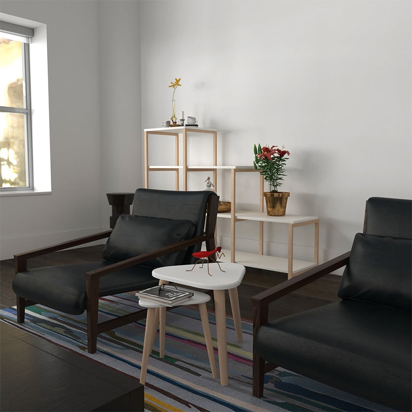 Set de Mesas Triangulares Blanca en melamina 15 mm con protección antimicrobiana al 99.9 % y patas torneadas en madera natural.El tiempo de entrega de este producto es de 3 a 8 días hábiles.Importante: Este producto NO incluye elementos decorativos ni ambientación y El color presentado en la fotografía es una aproximación al color real.