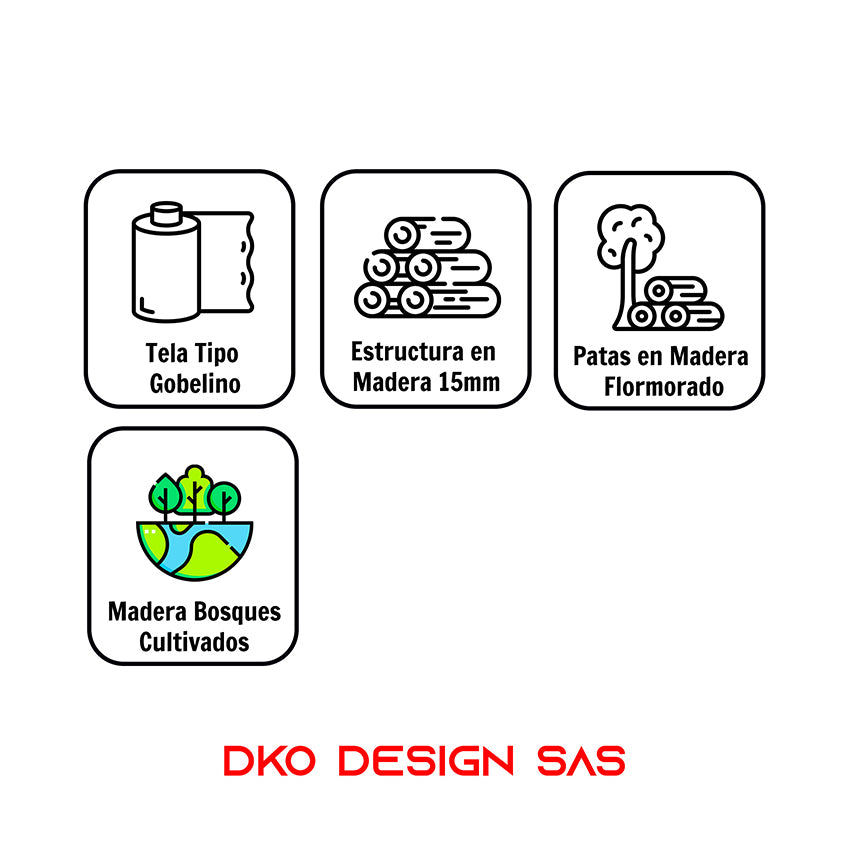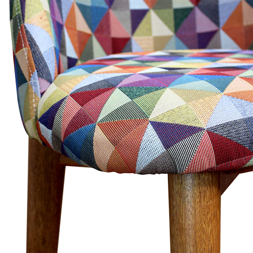 Set x 2 Sillas Bar con espaldar en madera con tapizado en tela gobelino Colors. Estructura en madera natural espuma de alta densidad.