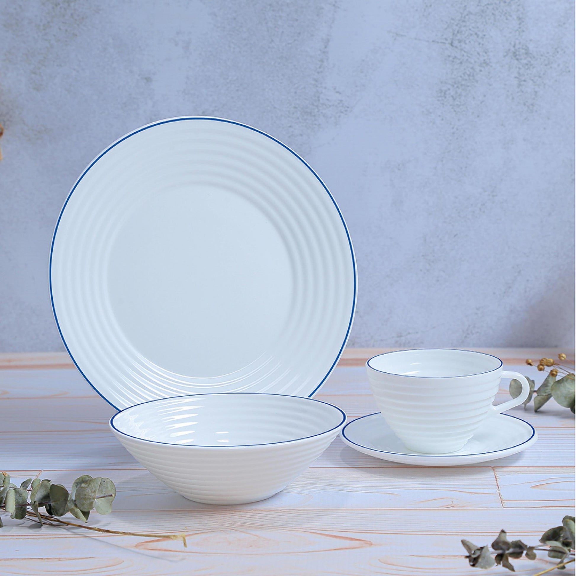 Vajilla Ondas Borde Azul